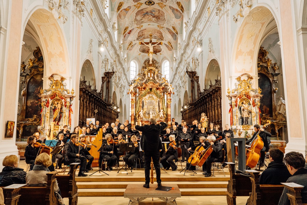 Den Auftakt des Kirchenkonzerts gestaltete Ludwig Kibler an der Gabler-Orgel mit Bachs „Toccata und Fuge d-Moll“. Es folgten Palestrinas „Alma Redemptoris Mater“, Vivaldis „Gloria in excelsis Deo“ und weitere Werke von der Renaissance bis zum Barock, bei denen Chor und Orchester gemeinsam einen festlichen Klangraum entfalteten. Ein Höhepunkt des Abends war die Sopran-Arie „Laudate Dominum“ von Mozart, meisterhaft gesungen von Verena Gropper. Auch in César Francks „Panis angelicus“ und Faurés „Pie Jesu“ bestach sie durch Ausdruckskraft und technische Sicherheit. Die Capella Novanta unter Konzertmeister Günther Luderer begleitete Chor und Solistin sensibel und präzise. Mit Mendelssohns „Jauchzet dem Herrn alle Welt“ und dem abschließenden „Nun danket alle Gott“ fand das Jubiläumskonzert einen feierlichen Ausklang.